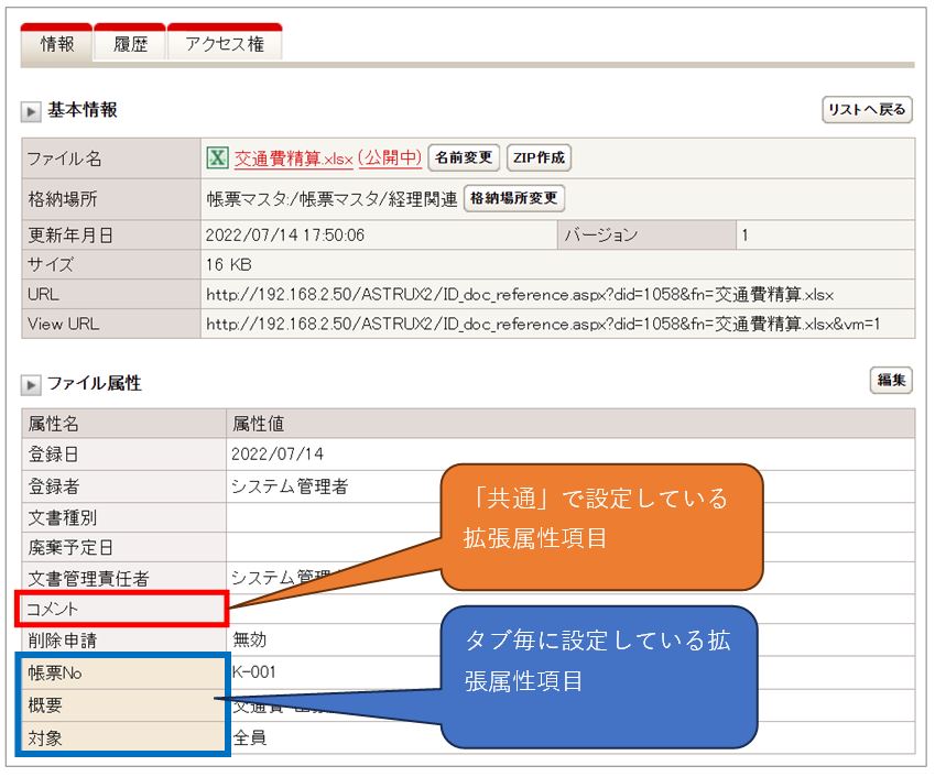 全タブに共通して利用したい拡張属性項目がある場合は、下記共通設定を行う事で可能です。